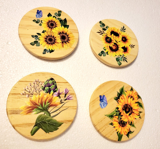 Assorted Sealed Wooden Coasters sets of 4 with holder (click to view other options)